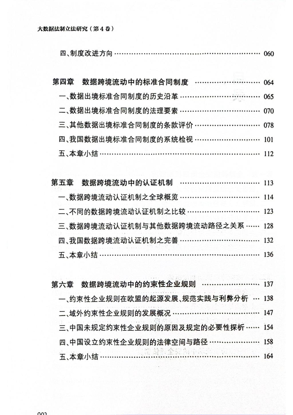 《大数据法制立法研究》共分为四卷,91.6万字。第一卷为《大数据法制立法的基础理论研究》,主要研究相关基本概念、立法模式、立法理念、重要理论等基础理论问题。第二卷为《个人信息保护法的解释、实施与完善》,该部分将重点论述个人信息保护法的解释和实施过程中的若干重要疑难问题。第三卷为《数据共享与开放法律问题研究》,下设三编:第一编为政务数据共享法研究。这是规范政务数据在政务部门之间有序共享,切实保护个人信息权益的重要法律,也是大数据时代亟待立法的法律。第二编为政府数据开放法研究。这是发挥政府掌握的大数据资源,发挥大数据红利,促进创业创新,激发市场活力的重要法律,也是大数据时代亟待立法的法律。第三编为数据交易法研究。这是盘活企业掌握的数据资源,促进企业之间数据资源共享的重要法律,是大数据时代亟待立法的重要法律。第四卷为《数据跨境流动法律制度研究》,重点论述数据跨境流动所涉及的个人信息保护法和数据安全法问题。