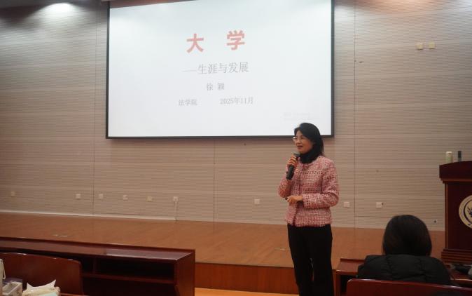 2025年11月5日下午,法学院于学术会堂202报告厅举办新生引航工程系列专题讲座。法学院党委副书记徐颖担任主讲人,围绕“每个人的大学都不一样”主题,系统性地为法学专业新生带来分享,对2025级新生尽快适应大学学习生活、明确生涯方向起到重要引领作用。
