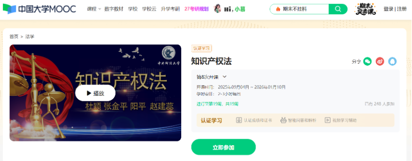 在“中国大学MOOC网”上线并持续运行《证券法学》《知识产权法》《合同法》等慕课,推进线上一般知识传授与线下研讨为主的教学方式变革,在线学习人数持续增长。