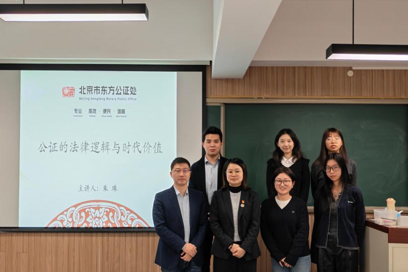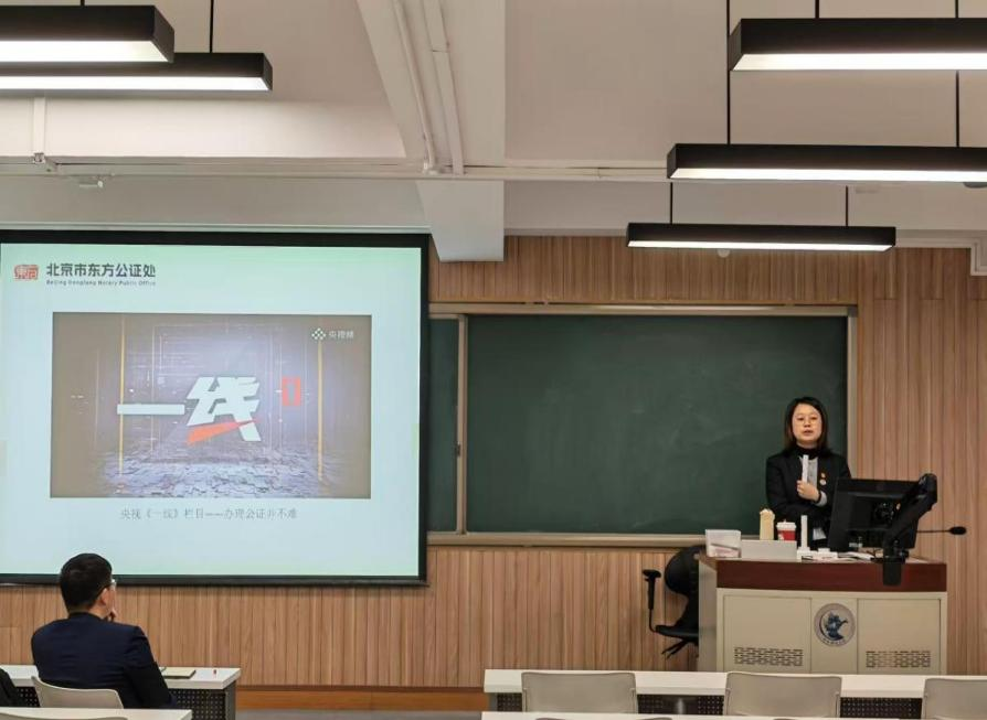 12月12日下午,北京市东方公证处三级公证员、北京市公证协会文化建设和宣传委员会委员朱珠在学院南路主教403教室主讲“公证的法律逻辑与时代价值”。讲座由法学院曹建军副教授主持,法学院2025级硕士生参加了此次学术讲座。