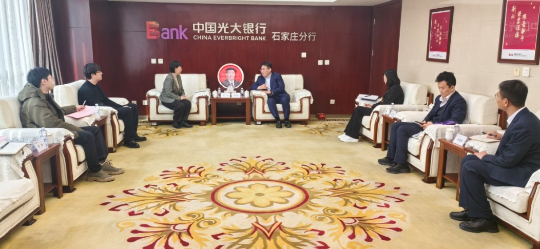 1月16日,团队拜访了中国人民财产保险河北分公司与中国光大银行石家庄分行。人保财险河北分公司党委书记、总经理、国际保险1991级校友卢燕和相关部门负责同志,光大银行石家庄分行党委书记、行长、中国光大集团驻冀企业协同联席会会长沈春华和相关部门负责同志,对团队到冀访企拓岗促进高质量就业、深化校企合作高度重视。双方围绕行业人才需求、成建制实习实践、产教研结合等方面进行深入交流,就学校河北籍学子寒暑假实习实践常态化机制构建达成共识。河北校友联络处会长薛平友,秘书长李波,人保财险河北分公司一级专家、国际保险1984级校友李岩,光大银行河北雄安分行党委书记、行长、法学研2007级校友孙志华,光大银行石家庄分行特殊资产经营管理部副总经理、法学研2009级校友赵建伟等校友代表参加座谈。