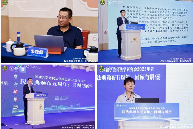 朱晓峰教授参加第五分会场“《民法典》人格权编、婚姻家庭编、继承编实施问题”第二单元的专题讨论,作“具体人格权概括规定与一般人格权规定的适用关系”的主题发言。武腾教授参加第二分会场“民法基础理论与《民法典》总则编实施问题”第二单元的专题讨论,作“应收账款电子凭证的民事法律属性”的主题发言。殷秋实副教授参加第二分会场“民法基础理论与《民法典》总则编实施问题”第三单元的专题讨论,作“效力体系视角下的法律行为成立理论构建”的主题发言。范佳慧讲师参加第三分会场“《民法典》物权编实施问题”第一单元的专题讨论,作“论诈害担保行为的撤销——以《民法典》第539条为解释基础”的主题发言。