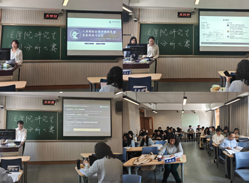 本届大赛共收到来自法学院硕士研究生的168份参赛作品,作品题材广泛,涉及民法、刑法、商法、经济法、行政法、诉讼法等多个部门法。初赛阶段,由法律援助协会学术部组成评议组,依据案例选取、写作规范、创新性、研究手段与方法、理论意义和现实价值六个维度进行双向匿名评审,共评选出50份优秀作品入围复赛。复赛阶段,徐建刚副教授、王湘淳副教授、周游副教授、李敏副教授担任评委,依据案例质量、分析思路、讨论内容等,推荐11份作品进入决赛。决赛采取线下答辩方式,由吴晓丹教授、李朝晖副教授、徐建刚副教授担任评委。决赛过程中,11组选手结合PPT对案例展开分析,全面展示自己的观点。